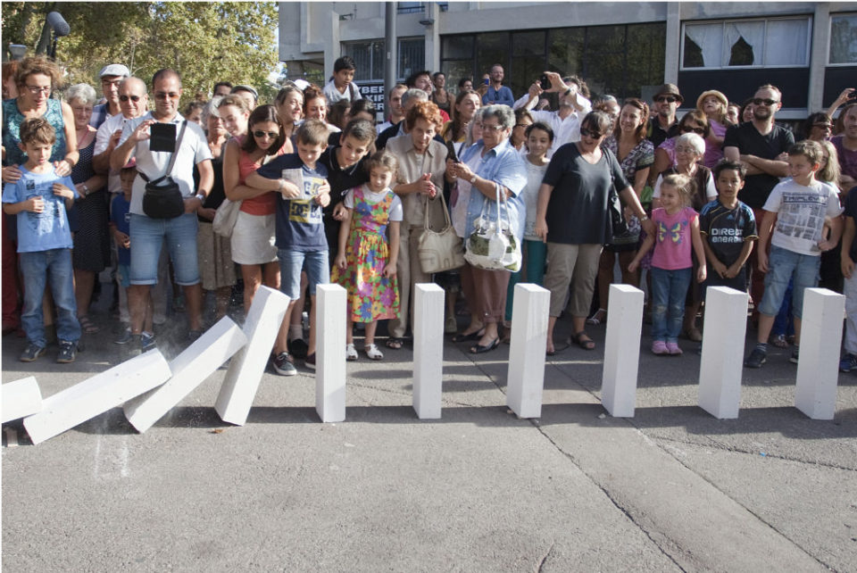 Op zaterdag 21 september start het Festival van de architectuur met een knaller. Het gratis evenement Dominoes sloopt de grenzen tussen Ledeberg en Moscou. Een traject van zo’n 7000 dominostenen dwars door Gent verbindt buurtcentra, pleinen, kerken moskeeën, café’s, appartementen, huizen én Gentenaars.